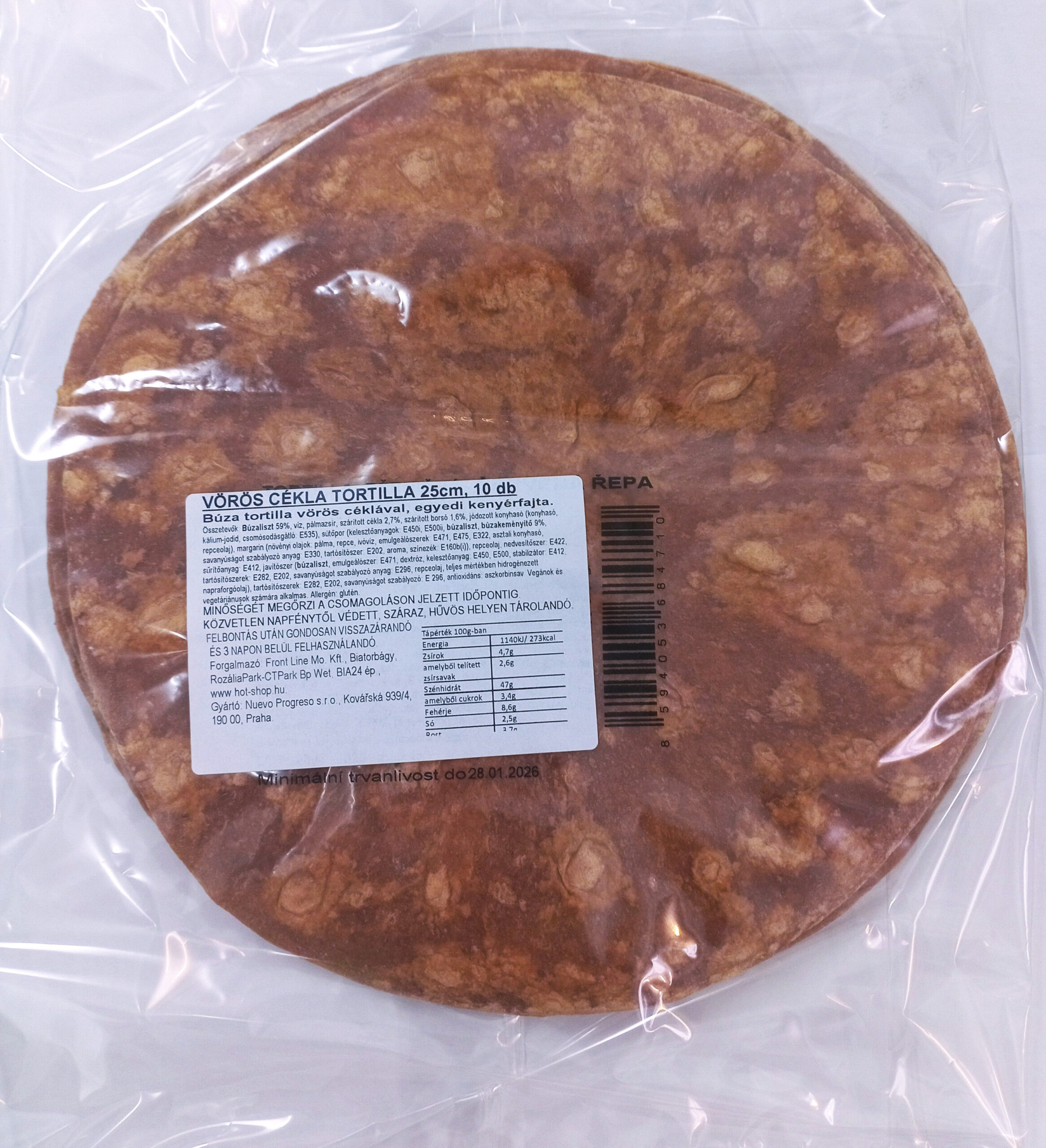 Tortilla 10” búza céklás (25 cm) 10db – AMBIENT